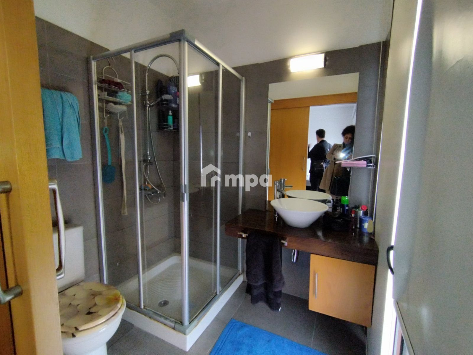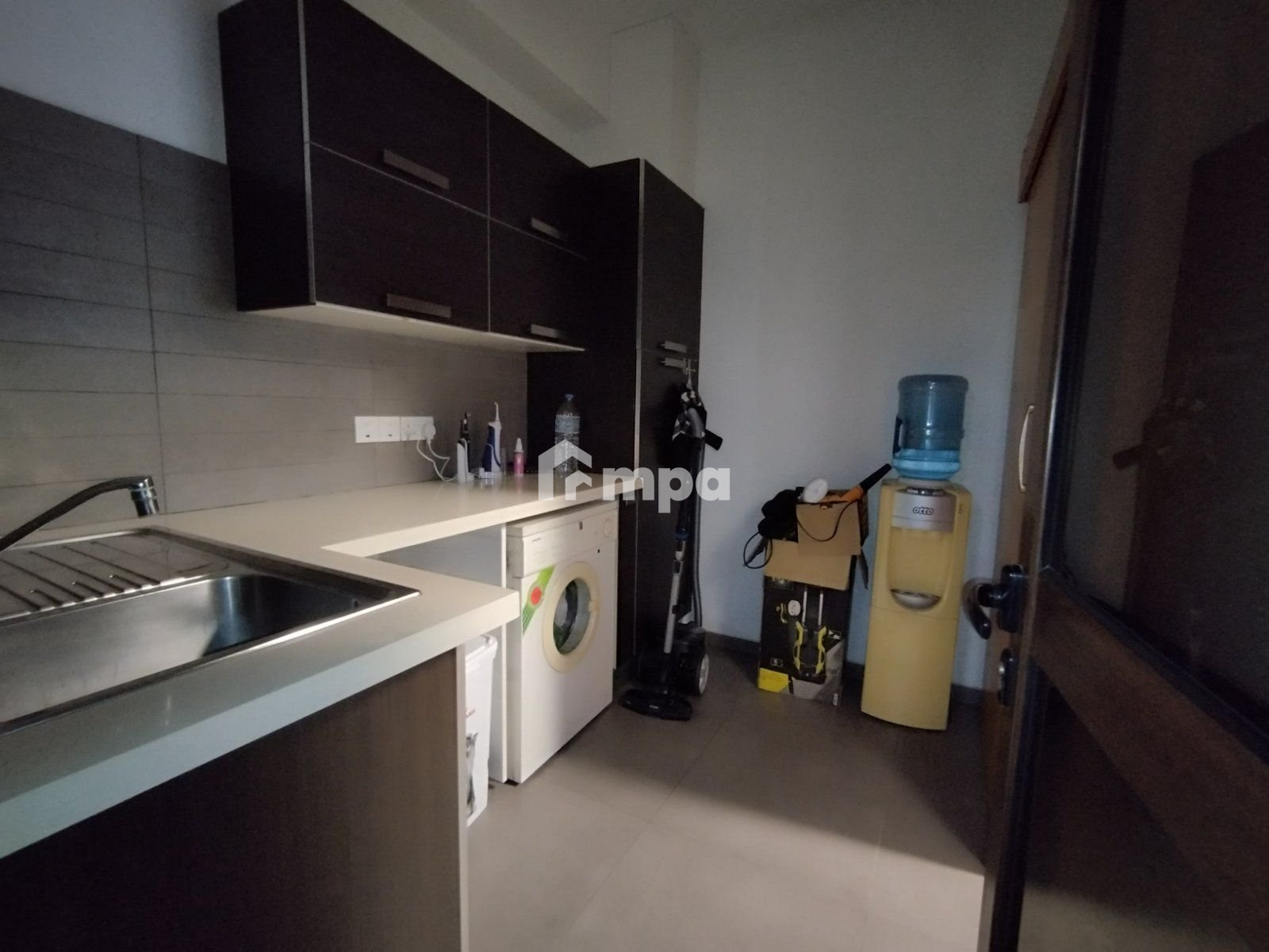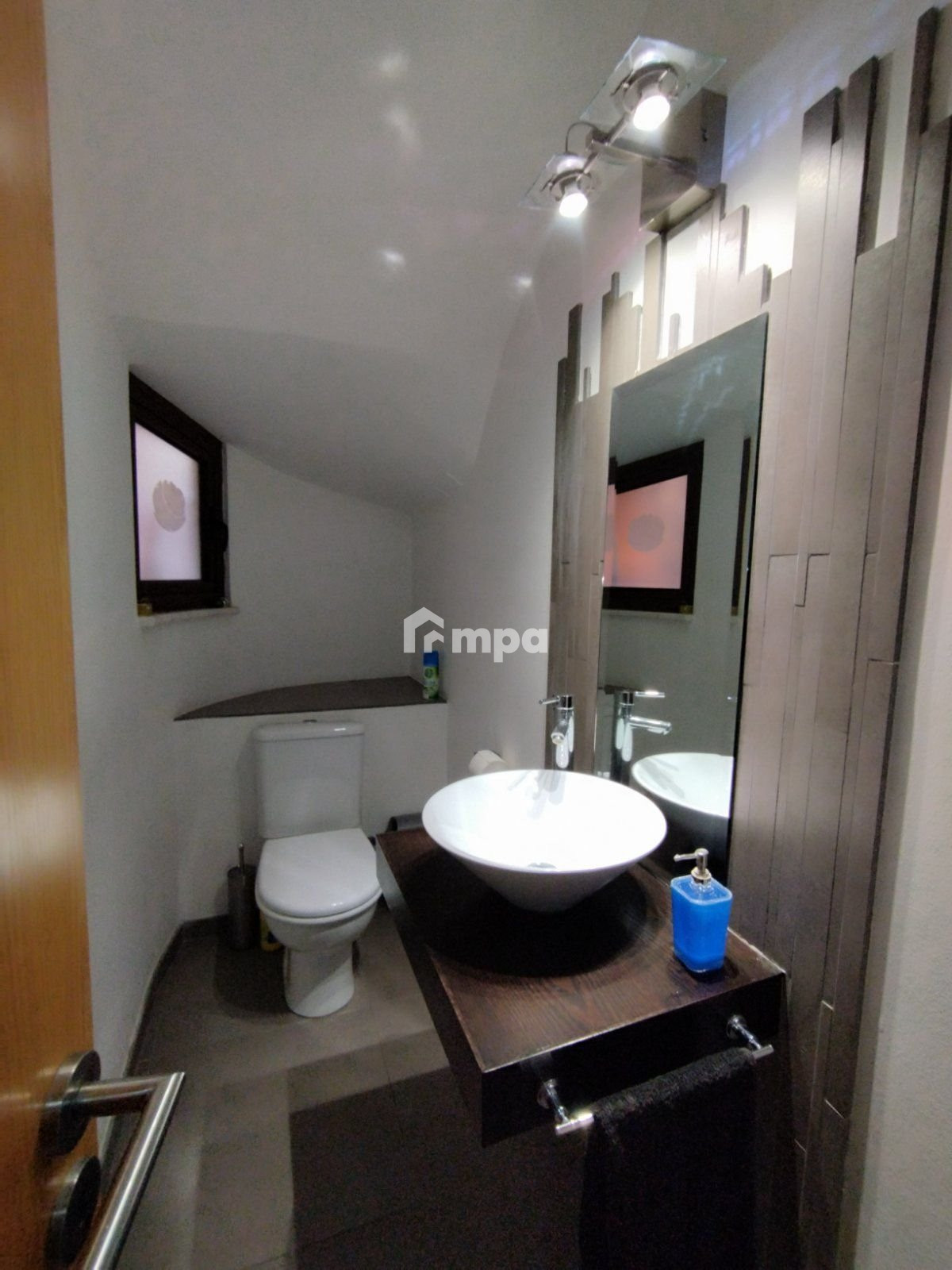 There was a laundry room, three bathrooms, a modern bar area room, a fireplace, and protective cameras.