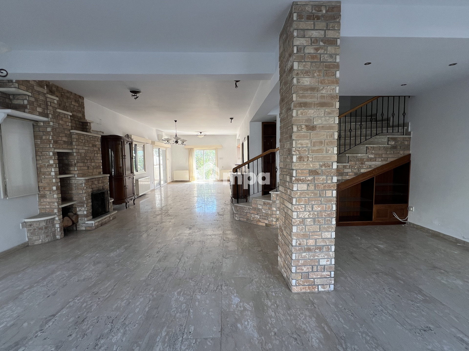 For sale is a spacious ground floor house in the popular area of Agios Dometios, with a generous internal space of 240 m². This well-built resale home features three comfortable bedrooms and two bathrooms, offering plenty of space for families or anyone needing extra room. The house offers two verandas, one at the front and one at the back, along with a designated barbecue area.