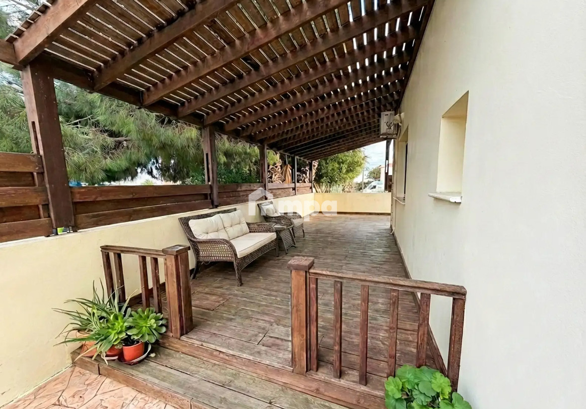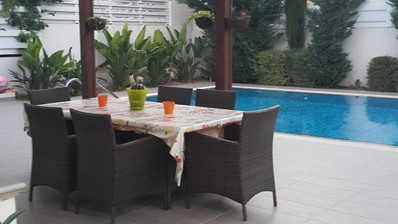 There are very nice outdoor sitting areas in the front and in the back of the house.