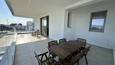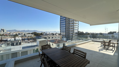The property features two bedrooms and two bathrooms, including a master bedroom with en-suite. Enjoy a spacious 17 sq.m. veranda, as well as a private roof garden with open views, perfect for relaxing or entertaining.