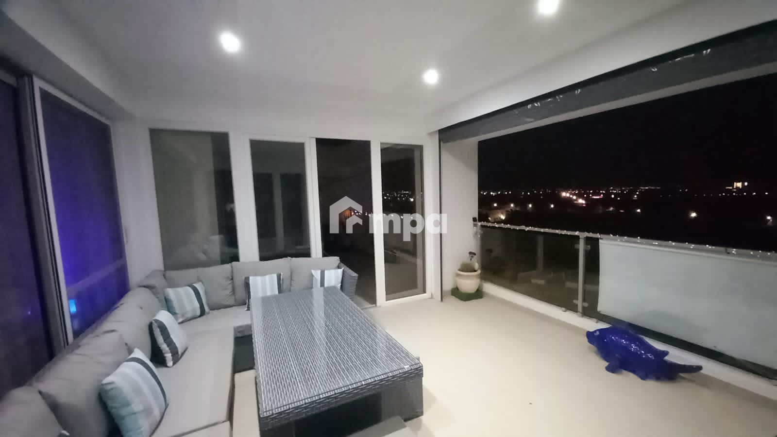It has an open plan sitting-living area, kitchen, 2 bedrooms, 2 bathrooms and a covered large veranda. A/c units in all rooms, covered parking included.