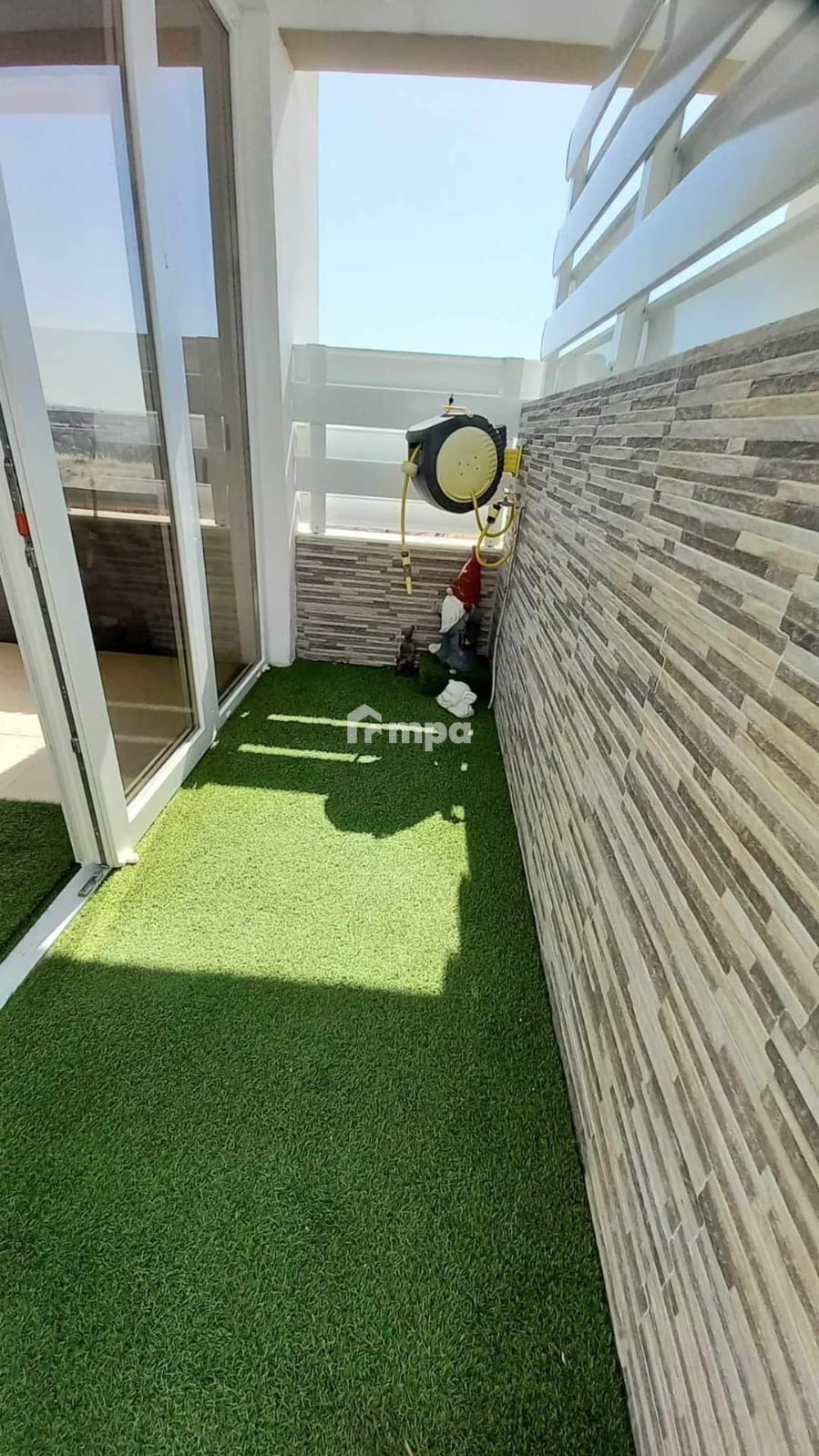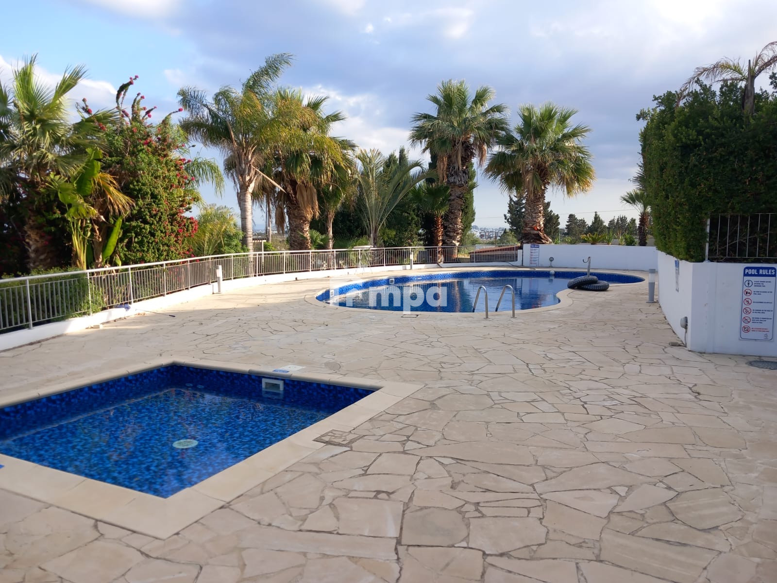 The apartment is on the 2nd floor of a well maintained complex with communal pool and nice garden.