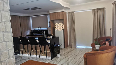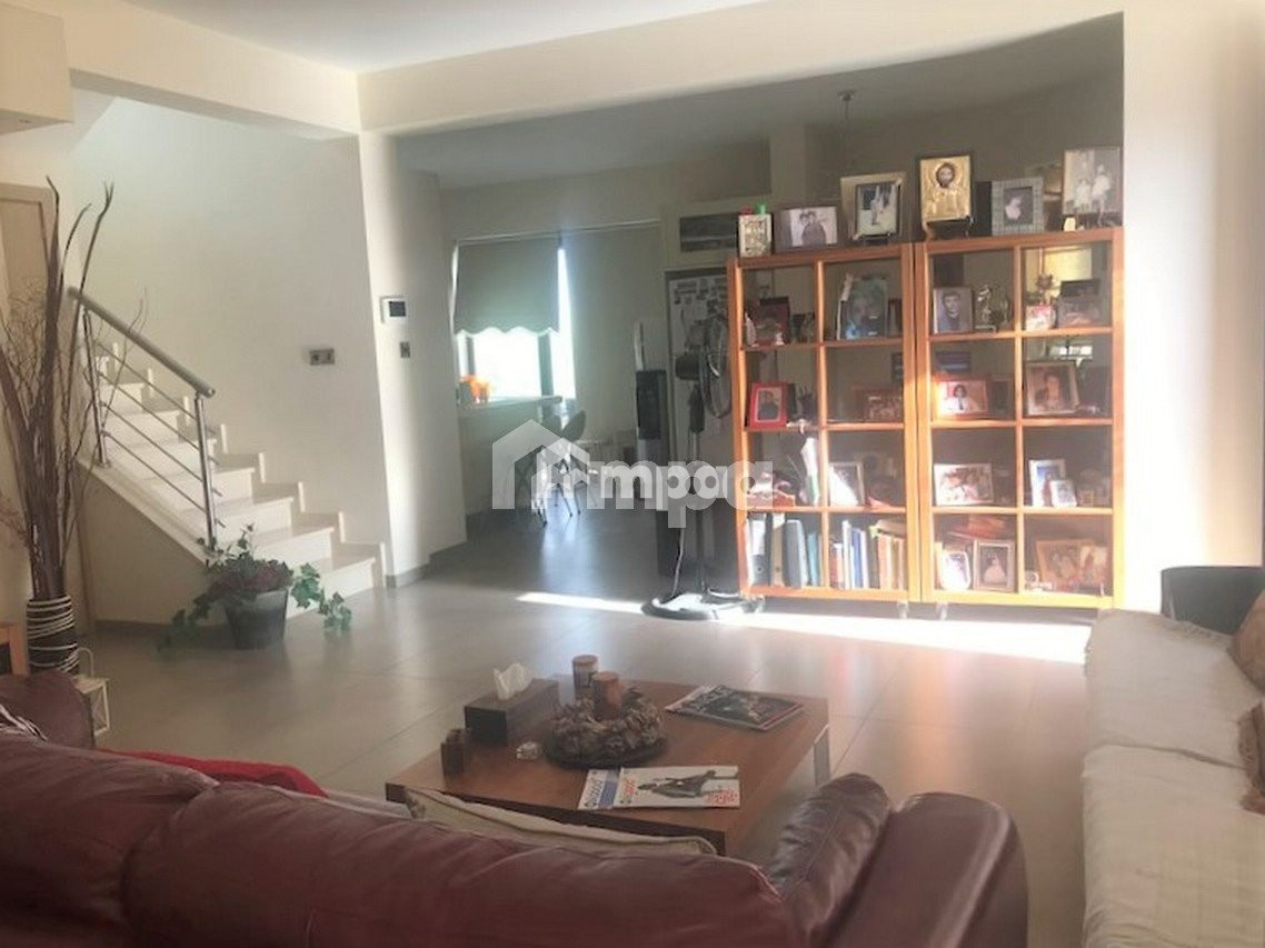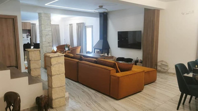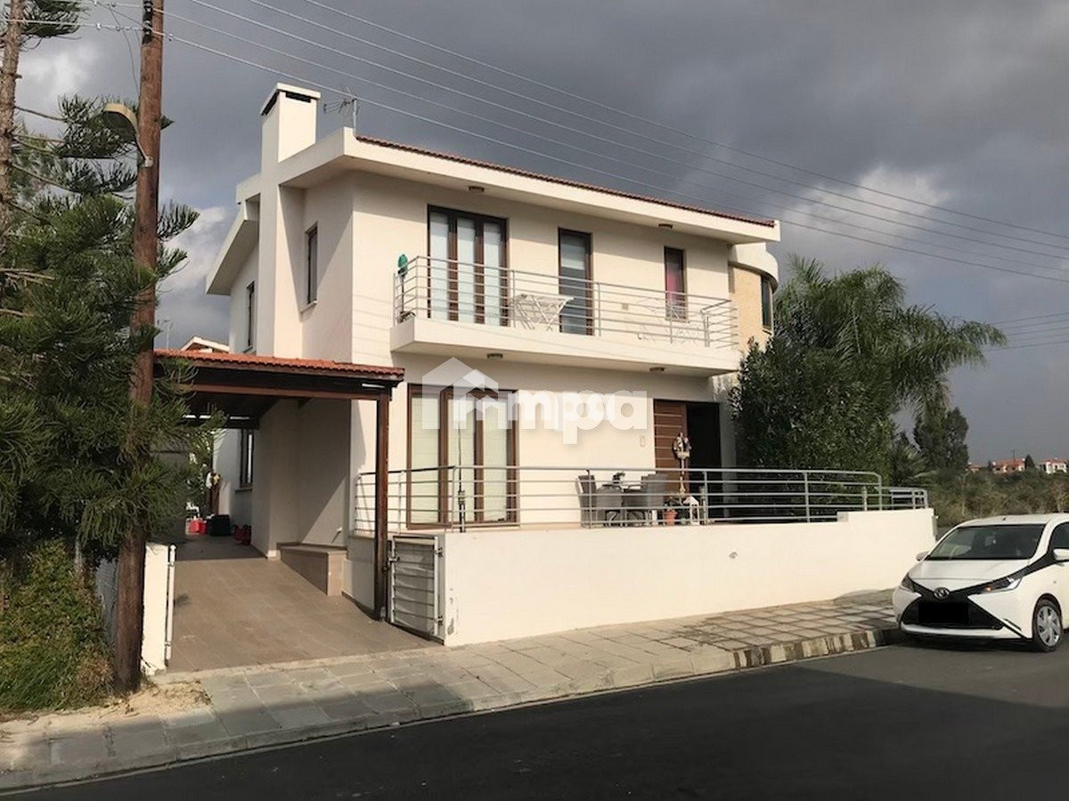 Η διώροφη κατοικία είναι ανεξάρτητη και αποτελείται στο ισόγειο από καθιστικό και σαλόνι με τραπεζαρία ως ενιαίο χώρο, ένα υπνοδωμάτιο, κουζίνα με νησίδα (island) και καθημερινό καθιστικό, τουαλέτα ξένων, αποθήκη και εσωτερικό κλιμακοστάσιο για τον όροφο. Ο όροφος αποτελείται από διάδρομο, πλυσταριό, καλυμμένη βεράντα, μπάνιο με τουαλέτα και τρία υπνοδωμάτια, με το κυρίως υπνοδωμάτιο να διαθέτει (en-suite) μπάνιο με τουαλέτα και γκαρνταρόμπα. Διαθέτει τζάκι, κεντρική θέρμανση γκαζιού, κλιματιστικά και τριφασική παροχή ηλεκτρισμού. Είναι ηλικίας δέκα χρόνων περίπου, με πολύ καλού επιπέδου υλικά/τελειώματα και βρίσκεται σε πολύ καλή φυσική κατάσταση και συντήρηση.